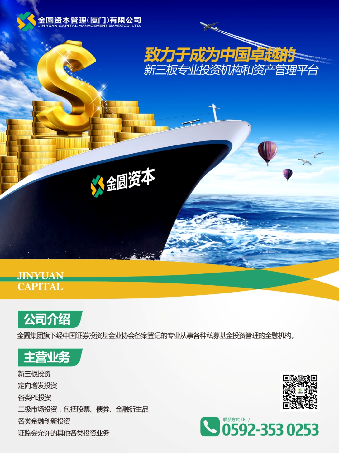 金圆资本作为专业的新三板投资机构,将一如既往地支持中小企业发展,为优秀企业提供股权融资服务,助力中小企业更好对接资本市场,利用资本的力量快速成长,促进厦门经济繁荣发展。