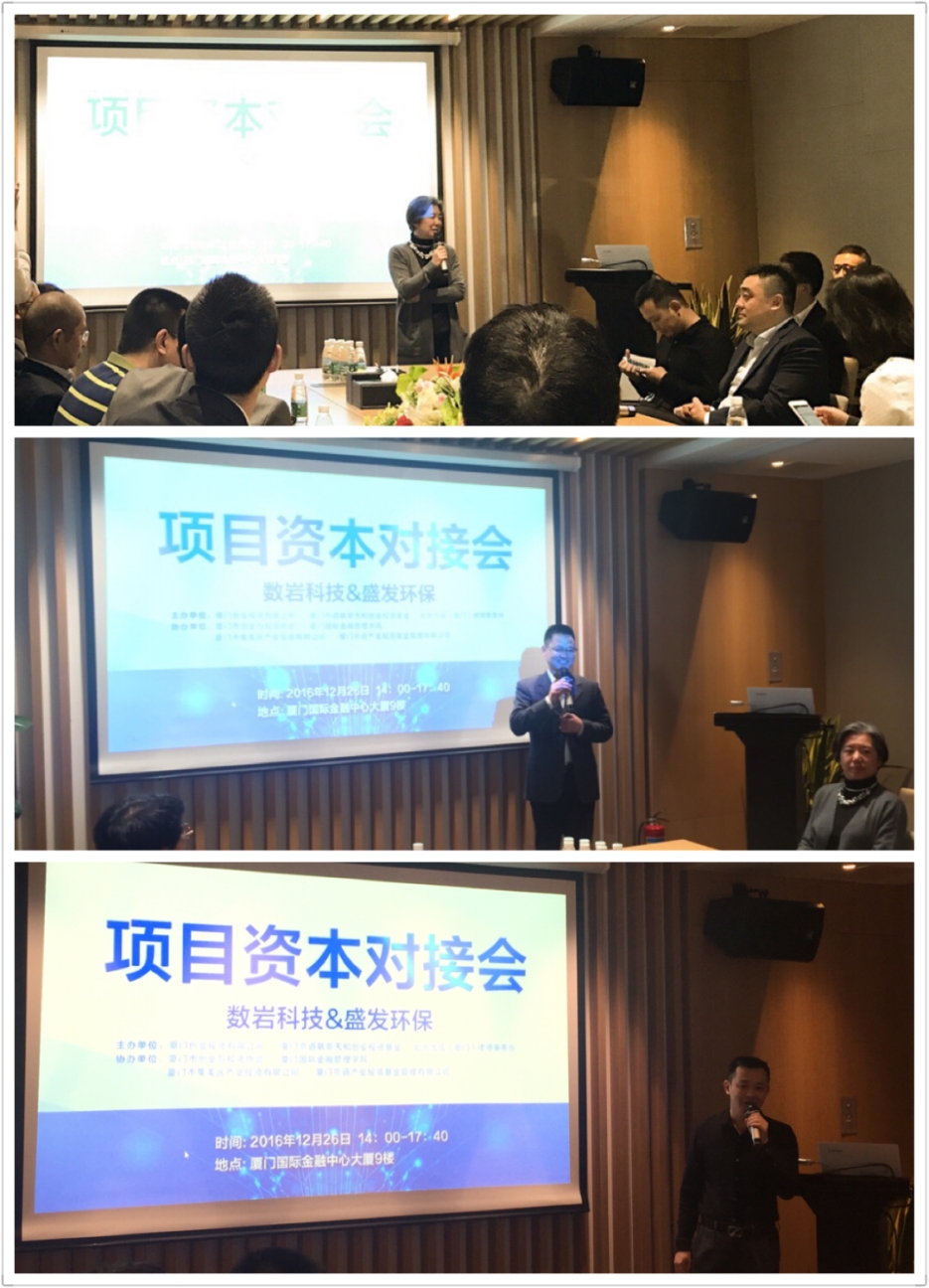 12月26日,创投公司联合多家市产业引导基金参股子基金和优秀股权投资机构,为2家我市优质项目企业--盛发环保和数岩科技举办了政府投资基金优质项目路演活动。此次活动在厦门市创业与投资协会首届轮值会长单位--北京大成(厦门)律师事务所举办,这是创投协会试行轮值会长机制以来举办的首场资本项目对接会。