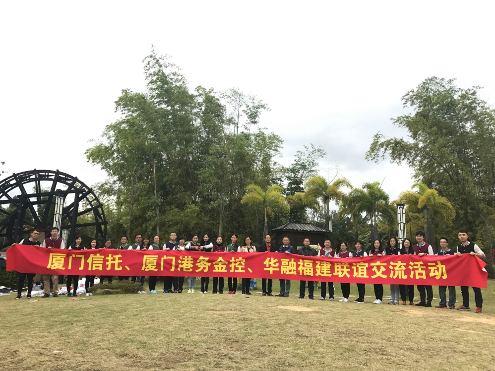 为活跃信托公司青年员工的文化生活,促进同业青年员工交流,12月25日圣诞节当天,由信托公司工会与华融(福建自贸试验区)投资股份有限公司工会共同举办,厦门港务金融控股有限公司、人行厦门中心支行的部分员工共同参加的联谊交流活动在泉州惠安聚龙岛举办,信托公司工会主席蔡炎坤、工会副主席苏东升,华融公司监事长明航、工会主席何晓鸣等与二十多名年轻员工参加了活动。