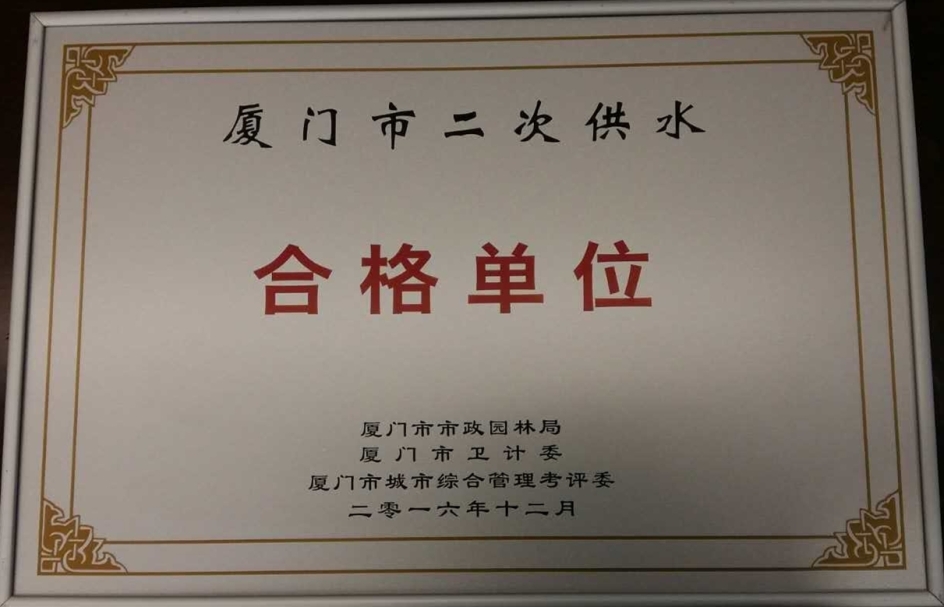 近日,ifc厦门国际金融中心再次被厦门市市政园林局、厦门市卫计委和厦门市城市综合考评委评为厦门市二次供水合格单位。此次全市300多家单位参评仅50家单位通过评审,ifc厦门国际金融中心已连续第四个年度荣获此证。