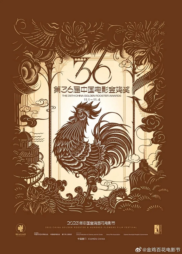 本届海报延续往届传统,以雄鸡图形作为主视觉的核心元素,以中国非遗技艺“剪纸”的形式展现中国电影的风采,用中国文化瑰宝,讲好中国故事。