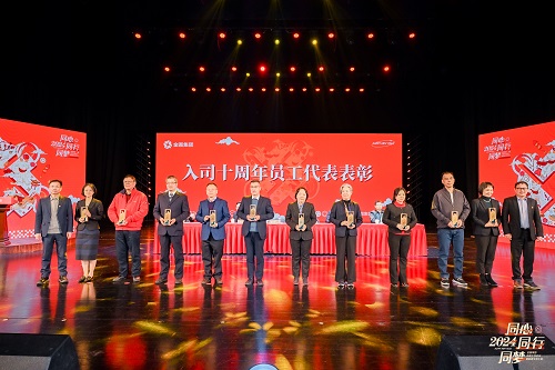 会上还举行了入司十周年员工代表表彰仪式。十余年来,他们与集团同担风雨、并肩成长,将最好的年华献给金圆,成为团队里坚不可摧的基石。十年如一日的兢兢业业,他们初心如磐,用行动诠释“坚守”的意义。
