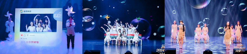 新春文艺汇演创新表演形式,通过“金圆电台”主持人与金圆人的来电交流,讲述金圆人“夏·长——敢于追梦、秋·收——乘风破浪、冬·藏——蓄势待发、春·生——心向未来”的四季故事。