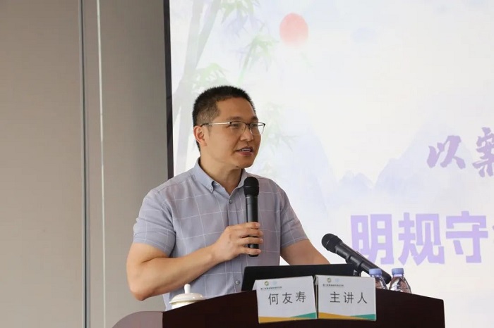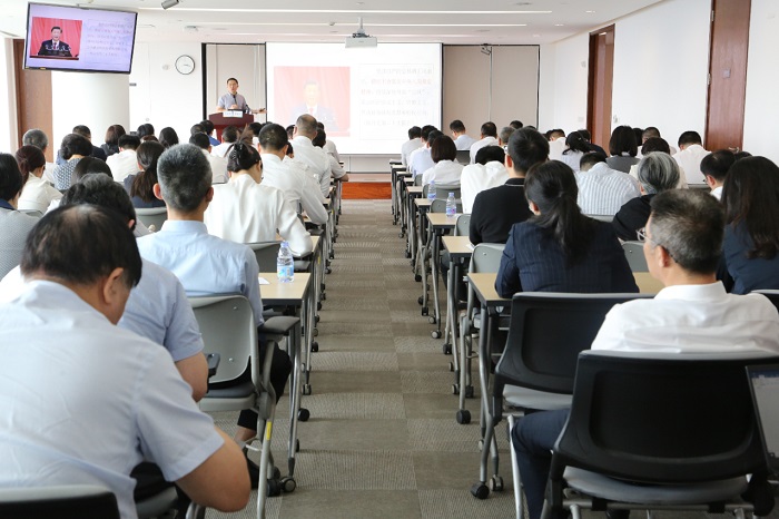 为进一步推动党纪学习教育走深走实,深化党员、干部对《中国共产党纪律处分条例》的理解和运用,切实增强党纪学习教育的针对性和实效性,5月7日下午,金圆集团举办党纪学习教育的第一场专题辅导讲座,邀请到市纪委监委第四纪检监察室何友寿同志讲授《以案为鉴 明规守纪敢作为——解读<中国共产党纪律处分条例>》。集团党委领导班子成员、全体中层以上干部、各党组织负责人、纪检委员及党务干部近100人参加学习。