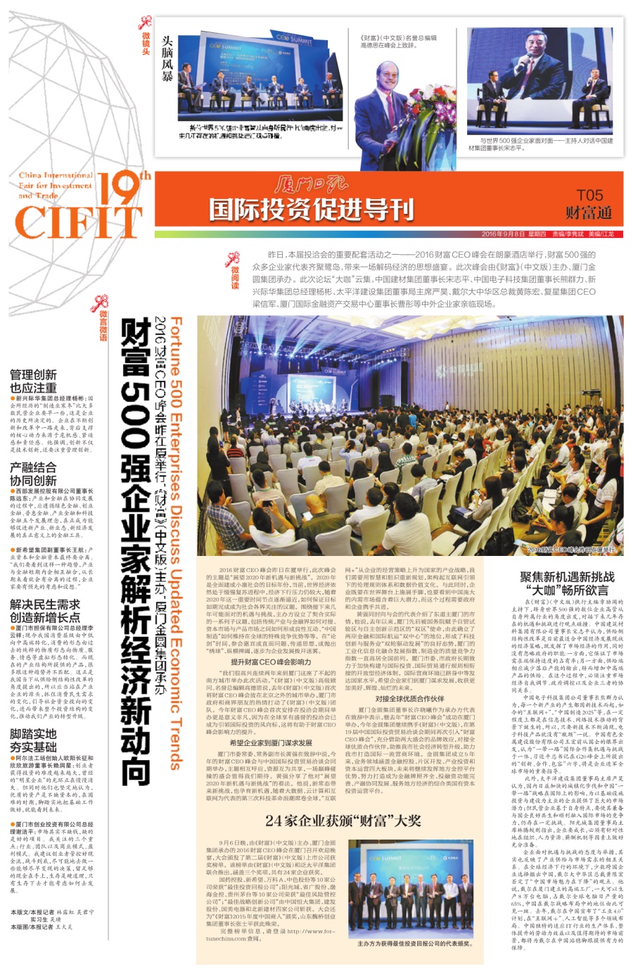 2016财富ceo峰会昨在厦举行,《财富》(中文版)主办,厦门金圆集团承办
