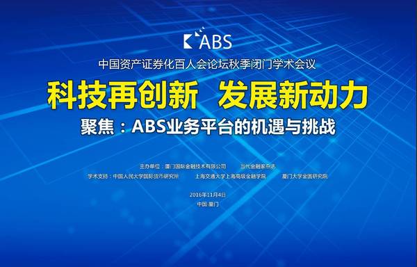 本报讯 (记者 吴君宁)金融的核心,是对风险的管理,而新兴的abs(资产担保证券)业务平台在为互联网金融提供基础设施建设的同时,也为快速发展的资产证券化市场带来全新管理模式。昨日下午,中国资产证券化百人会论坛秋季闭门学术会议在厦门举办,聚焦abs业务平台的机遇与挑战,开启科技金融助力资产证券化的新篇章。