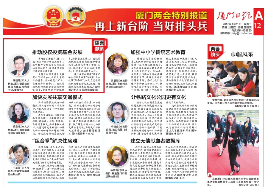 许晓曦(市人大代表,厦门金圆投资集团有限公司党委书记、董事长)