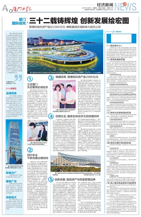 ▲厦门国际信托有限公司致力于为客户提供专业的信托服务。