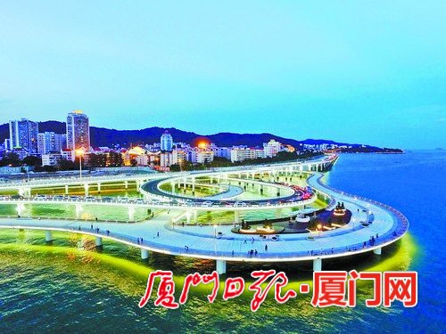 ▲厦门国际信托有限公司曾融资支持环岛路等市重点项目的建设。图为夜幕下的演武大桥观景台。(本报记者张奇辉航拍器摄)