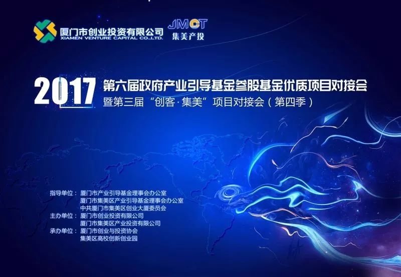 厦门日报讯(记者 林桂桢 通讯员 陈奕玲 马亮)2017年10月27日下午,我市第六届政府产业引导基金参股基金优质项目对接会暨第三届“创客集美”项目对接会(第四季)在集美区创业大厦举行。活动由厦门金圆投资集团有限公司全资子公司厦门市创业投资有限公司、厦门市集美区产业投资有限公司共同主办,厦门市创业与投资协会、集美区高校创新创业园承办。