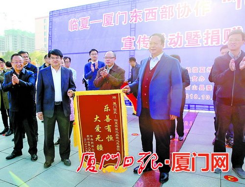 “临夏希望之旅慈善信托”获得中共积石山县委、积石山县人民政府授予的“乐善有恒、大爱无疆”锦旗。(厦门国际信托供图)