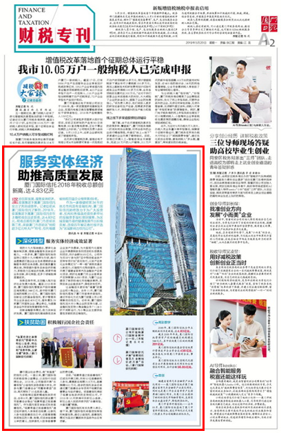 坚持创新发展,服务实体经济,金圆集团下属厦门国际信托交出了亮丽成绩单。记者日前从厦门国际信托了解到,2018年,金圆集团下属厦门国际信托全年上缴税收创历史新高,达4.83亿元,税收总额位列厦门市思明区第二名,荣获厦门市思明区“纳税超3亿元特大户”称号,位列福建省纳税百强企业榜单第69名。