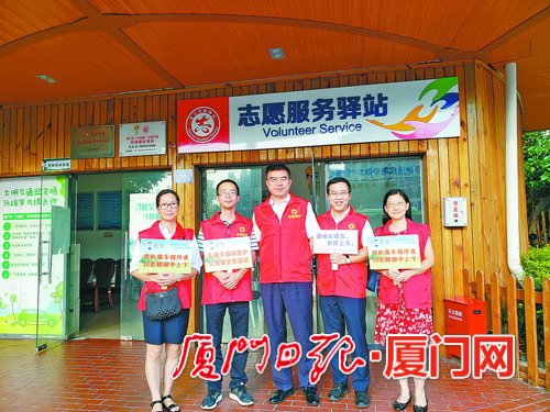 厦门国际信托志愿者在“小黄帽”志愿服务驿站开展文明出行宣传。 (厦门国际信托供图)