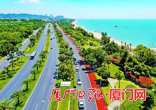 厦门国际信托积极为生态旅游、园林景观工程等绿色产业的可持续发展提供切实的金融保障。图为环岛路一带生态美景。(本报记者 王火炎 航拍器摄)