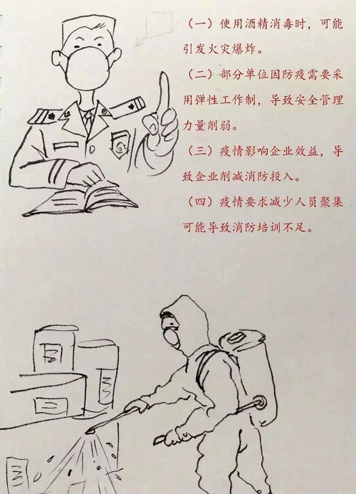 各单位要对消毒用的酒精实行单独存放、专人管理,严格落实火源管控措施。使用酒精消毒时应远离明火和高温热源,严禁对插座、开关、电器等带电设备喷洒液体消毒剂。消毒后,要及时开窗通风,严禁与明火接触。