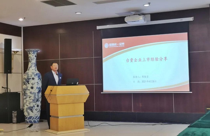 金圆统一证券总裁助理陈隆坚受邀发表《台资企业上市经验分享》。他介绍了台资企业上市政策背景及a股ipo最新动态、解读了新三板上市条件,并对厦门市台资企业上市情况及典型案例进行具体分析。他表示,台资企业上市挂牌财政扶持力度正不断加大,因“企”而异提供差异化融资支持,为台资企业上市带来空前的政策力度和良好机遇。政企加强协作,定能进一步推进台资企业在陆上市,促进两岸金融合作。