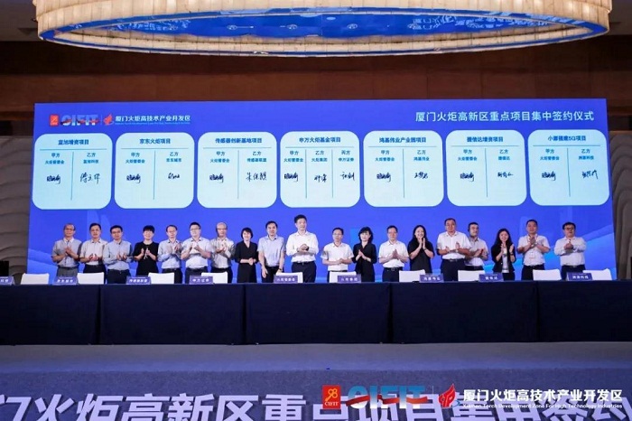 9月8日,厦门火炬高新区重点项目集中签约仪式举行。活动上,金圆集团和火炬高新区共同推进惠友五期人民币基金及昆桥半导体科技产业基金二期落地厦门,以基金为媒,引资金、引项目、引人才,服务我市招商引资大局,助推我市重点产业高质量发展。火炬高新区党工委书记、管委会主任庄荣良,金圆集团党委书记、董事长檀庄龙,火炬集团有限公司董事长苏玉荣,金圆集团副总经理、统一证券董事长薛荷出席并见证了签约仪式。