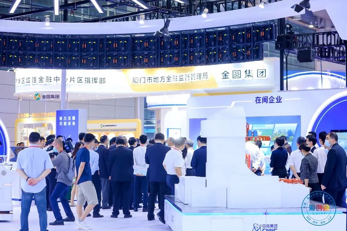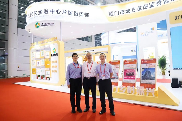 由厦门市金融监管局、金圆集团及成员企业厦门银行共同组团的厦门金融展馆亮相金融服务展区。今年金圆集团展区重点展示了集团推动两岸融合发展和企业上市培育、厦门国际信托创新投融资模式、厦门产业投资基金赋能产业发展、厦门中小在线以金融科技助力营商环境建设、厦门产权交易中心助力绿色经济发展等工作成效。