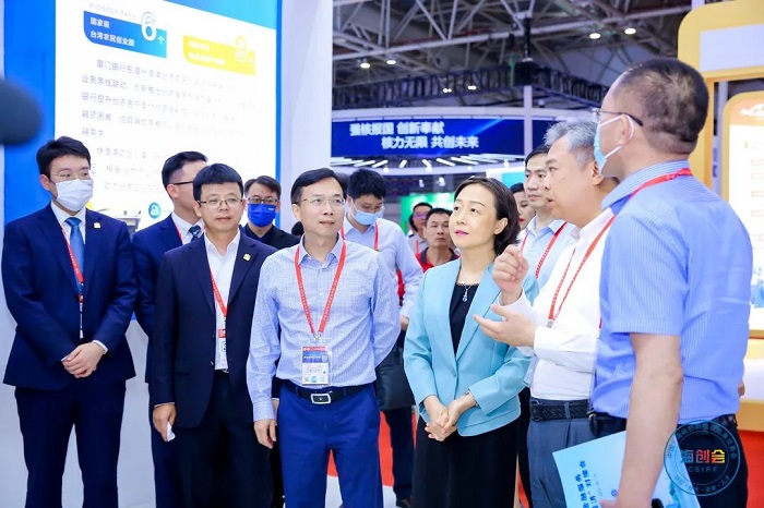 厦门银行作为刚刚加入金圆集团大家庭的新成员,在深耕两岸金融服务、推动两岸融合发展等方面与集团高度契合,正打造两岸金融合作样板银行。在厦门银行展馆,厦门银行行长吴昕颢向郭宁宁汇报了厦门银行服务台胞台企的工作成效,重点介绍了“薪速汇”产品切实解决台胞台企需求的创新做法。郭宁宁对厦门银行持续贯彻“融汇两岸”的战略表示充分肯定,勉励厦门银行继续深耕对台特色服务,助力提升在陆台胞台企的获得感、幸福感。