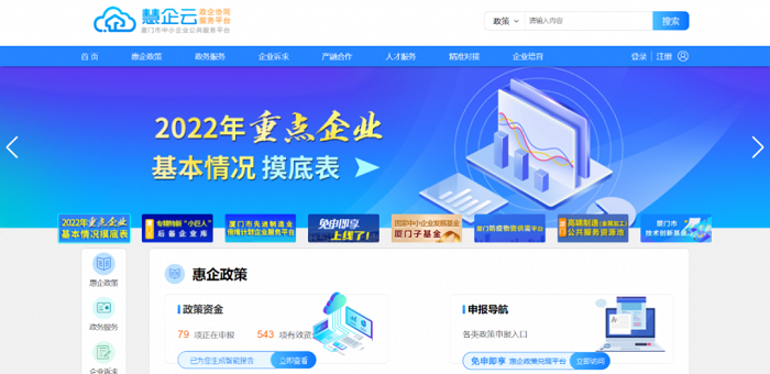 受市工信局委托,金圆集团成员企业厦门中小在线承接“慧企云”政企协同服务平台的建设运营,打通了全市存量中小企业在工商、税务等多个部门的基础数据,建立企业画像,并由此开发出政策兑现、融资、诉求对接、精准培育、人才培训等多种业务,为中小企业发展提供了包括短期、中期、长期在内的全流程服务,打造全市统一企业服务总入口,助力我市中小企业高质量健康发展。