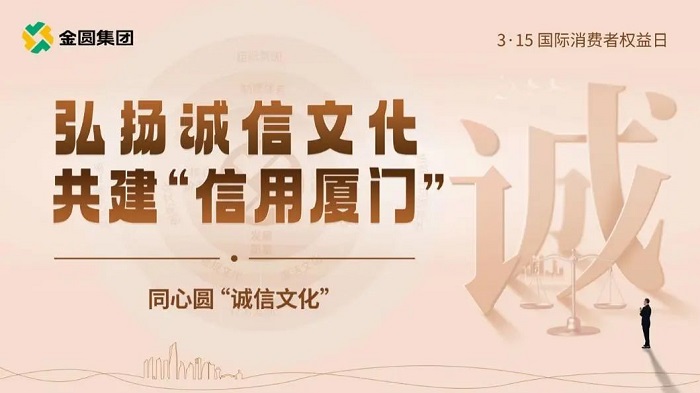 当前,厦门正大力弘扬诚信文化,建设“信用厦门”。诚信文化是金圆集团“同心圆”平博网的文化的重要组成,通过各业务板块的金融服务触角将诚信文化理念带到客户身边,正是金圆集团加强诚信文化建设的重要举措。