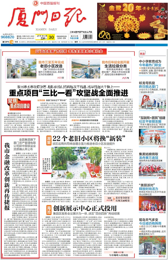 刊发于2016年5月30日《厦门日报》头版 厦门日报讯 (记者 林露虹)记者昨日获悉...