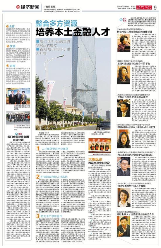 新华网厦门12月21日电(记者余瑛瑞)21日,两岸金融中心建设暨厦门国际金融管理...