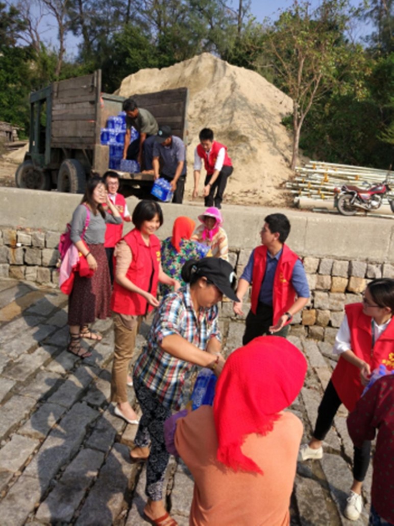 9月19日中午一点,邓小达等7名志愿者火速赶往码头,顶着炎炎烈日同小嶝居民一起将物资搬运至摆渡船,送到小嶝岛。下午六点,在小嶝社区居民委员会的帮助下,集团所捐物资全部妥善发放至居民家中。“感谢金圆集团,受灾后第一家企业伸出援助之手,我们很感动,也更有信心重建美丽小嶝了!”小嶝社区居民委员会主任道出了小嶝居民的感激之情。