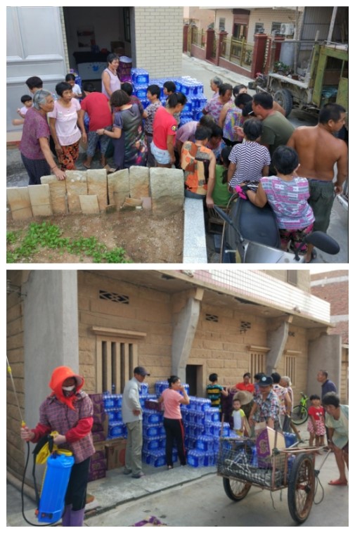 一方有难,八方支援。9月18日下午,在得知小嶝社区的情况后,集团领导高度重视,马上组织捐赠小嶝岛急需的饮用水和食物。2016年9月19日中午,厦门金圆集团投资有限公司向大嶝街道小嶝社区居民捐助1500箱纯净饮用水和9000包方便面。