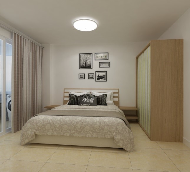 家庭公寓设计以温暖放松的家庭情境为出发点,大量使用温暖低饱和度的浅色系,营造出温馨舒适的家居环境。在套内设置私密与开放空间的转化点,利用实、虚体的互动而形成良好的空间转换,构成一个自然、自在的生活空间。