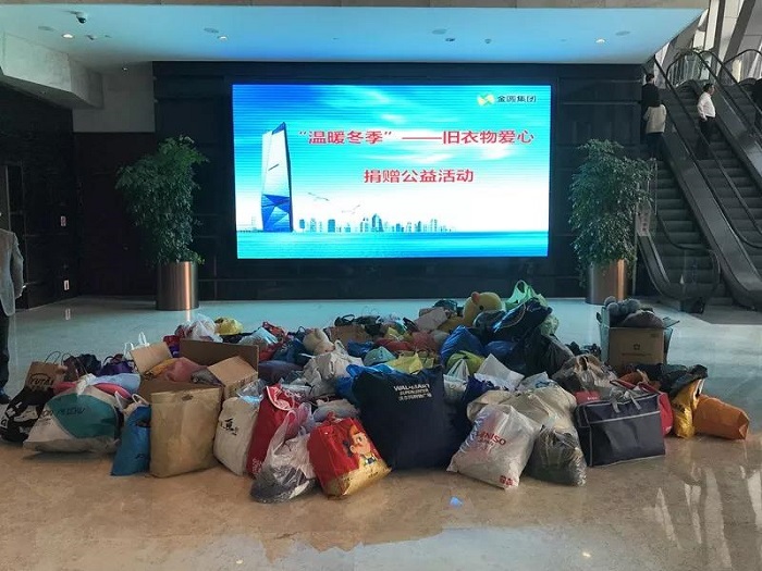 11月21日至12月2日,由集团第一支部发起,联合十八家党支部、集团工会、集团团委联合开展的人与自然共和谐系列活动——旧衣物捐赠活动暖心举办。本次捐赠还吸引了厦门监管局、菲普洛健身馆等厦门国际金融中心的其他业主单位共同参与,共捐赠物品1432件,其中:衣物1236件、毛绒玩具136个、被褥36套、鞋帽包等24件。