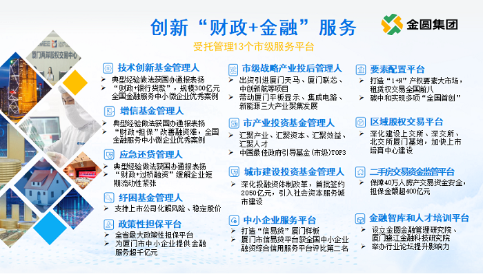 近年来,在厦门市财政局指导下,金圆集团聚焦技改研发、转型升级、增资扩产等稳市场主体的关键环节,打出“财政政策 金融工具”助企纾困“组合拳”降低企业成本,缓解融资难题,受托管理技术创新基金、增信基金、应急还贷基金、纾困基金、地方amc、中小企业服务平台、区域股权交易平台等13个市级服务平台,提供200多种金融产品和服务,打造企业全生命周期综合金融服务生态圈,为企业增资扩产和研发投入提供金融助力。相关经验做法获国办通报表扬。