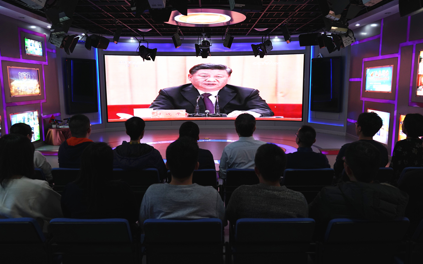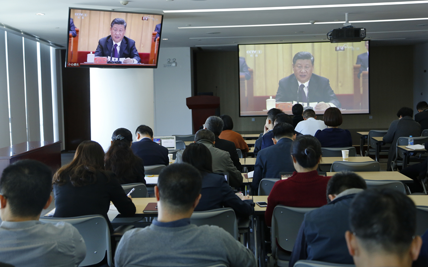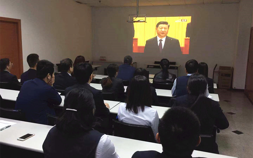 庆祝改革开放40周年大会于12月18日上午在人民大会堂召开。金圆集团党委组织70余名干部职工在48层会议室集中观看庆祝大会。