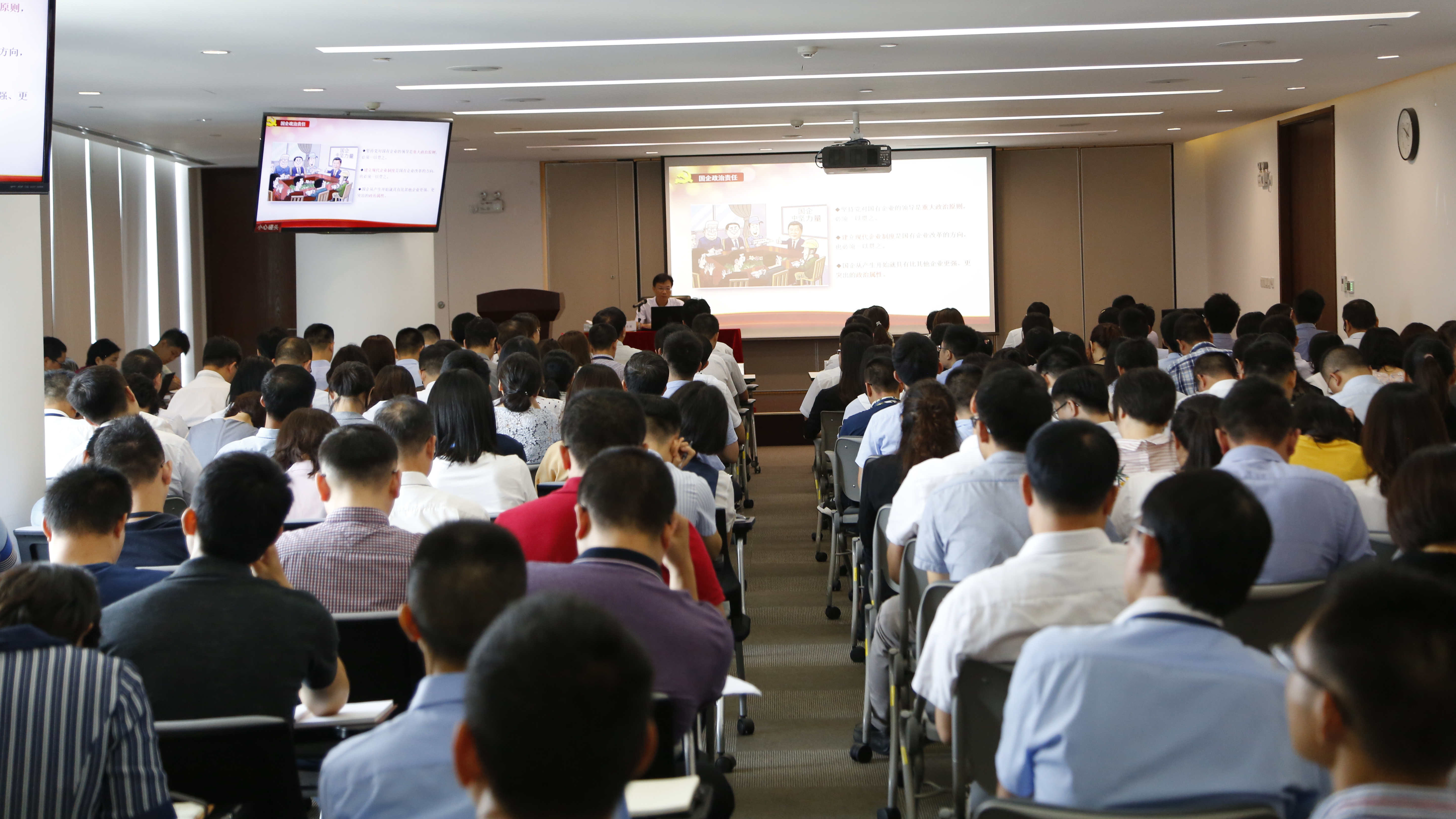 为深入贯彻落实习近平新时代中国特色社会主义思想,扎实推进“不忘初心、牢记使命”主题教育,激励全体党员增强“四个意识”,坚定“四个自信”,做到“两个维护”,723日上午,集团党委书记、董事长檀庄龙以“加强党的政治建设,统筹推进集团高质量发展”为题,向200多名党员干部讲专题党课。