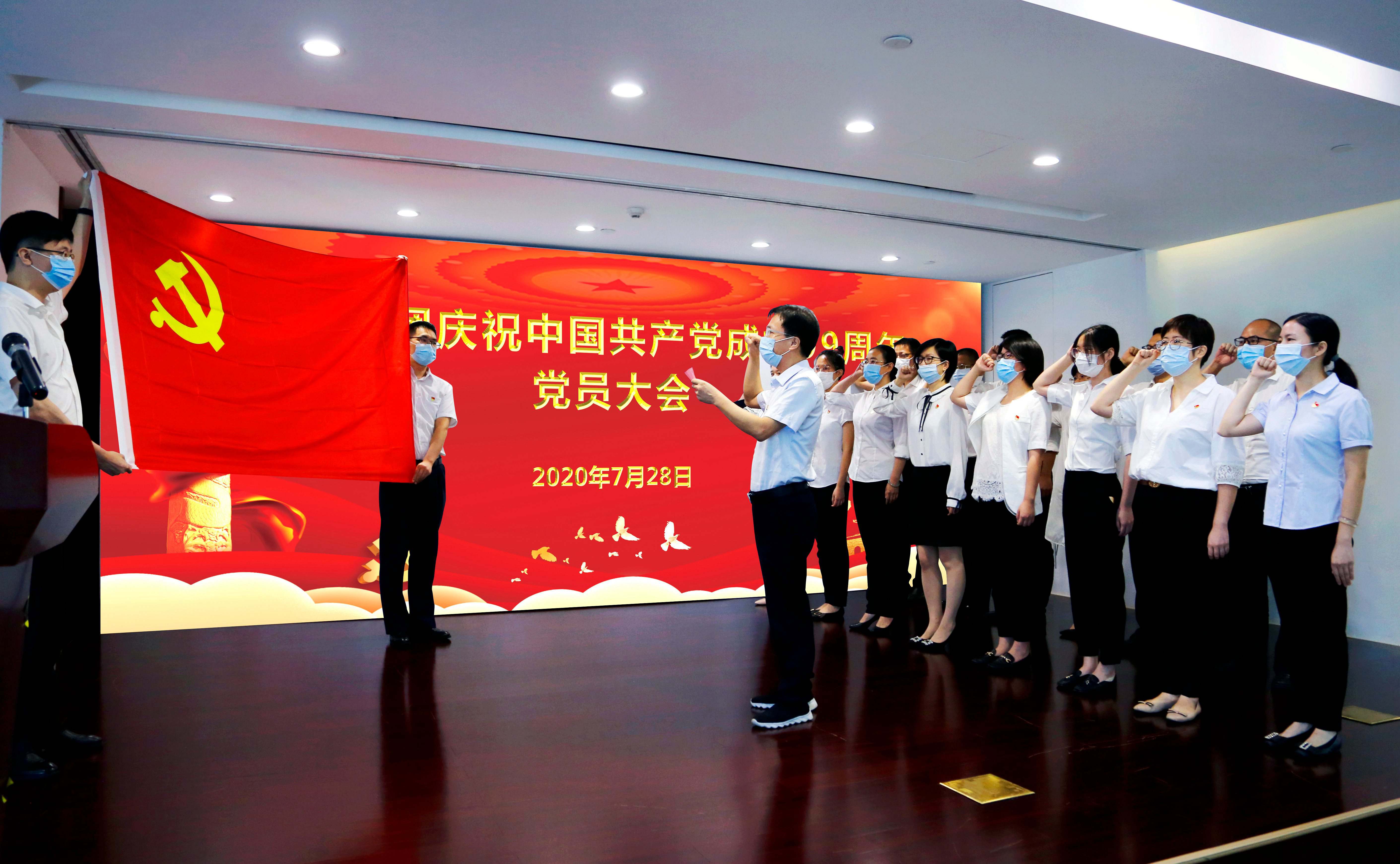 不忘初心,誓言有声。大会首先举行新党员入党宣誓和全体党员重温入党誓词仪式。在党委书记檀庄龙同志的带领下,新党员面向党旗庄严宣誓,一句句掷地有声的誓词坚定地表达了他们对党的赤诚之心与无限热爱。铮铮誓言,字字千钧,新党员将接过肩负历史使命和时代重任的接力棒,立足工作岗位为党旗增辉添色。老党员们见证新党员的成长,并一起重温誓词,感怀共产党人“为中国人民谋幸福,为中华民族谋复兴”的初心和使命。