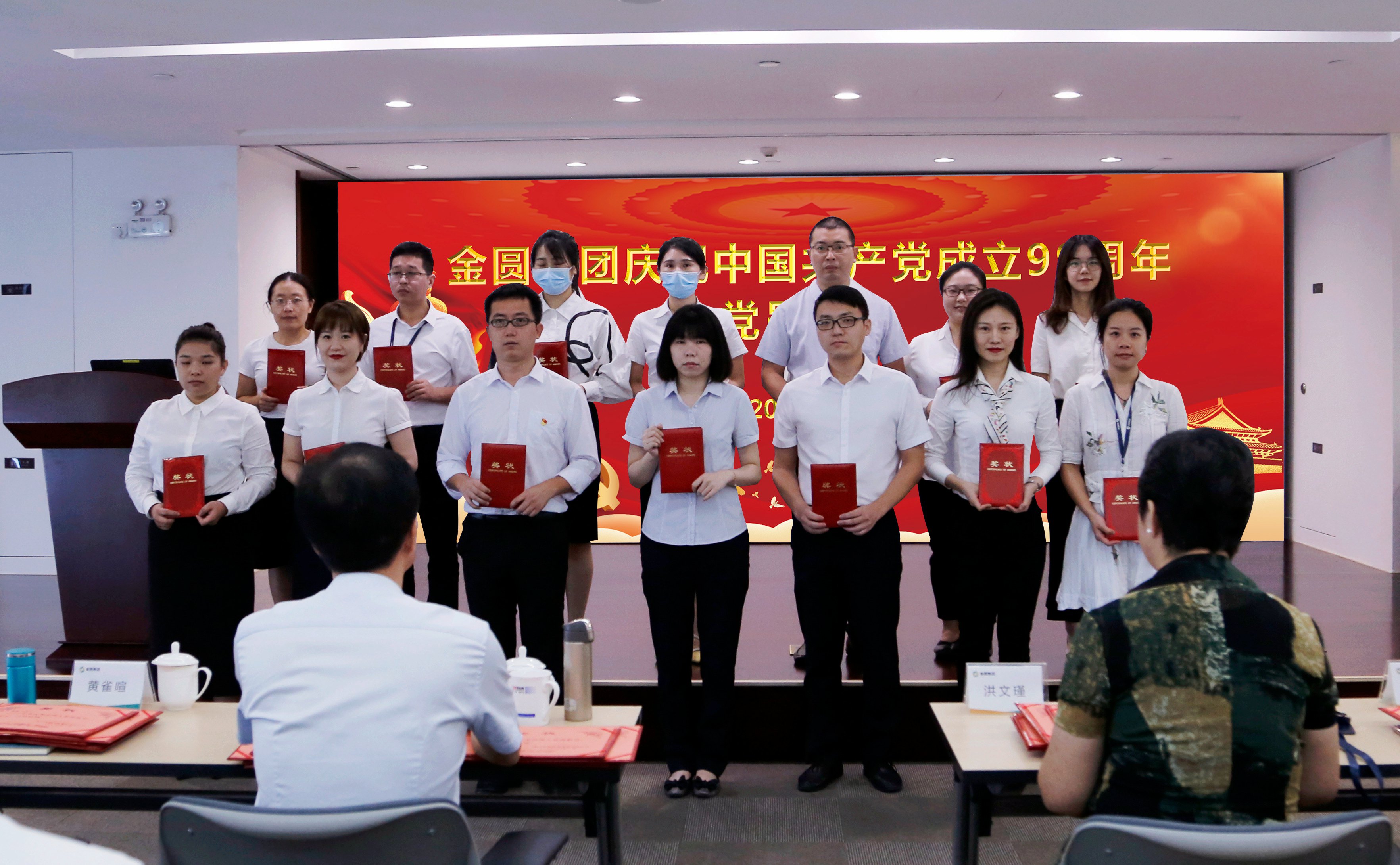 “我志愿加入中国共产党,拥护党的纲领,遵守党的章程,履行党员义务……”7月28日上午,在铿锵有力、庄严坚定的誓词中,金圆集团党委庆祝中国共产党成立99周年党员大会隆重召开。集团党委领导班子、全体中层干部、党员代表等近80人参加现场会议,300多名党员通过视频直播同步聆听党课。